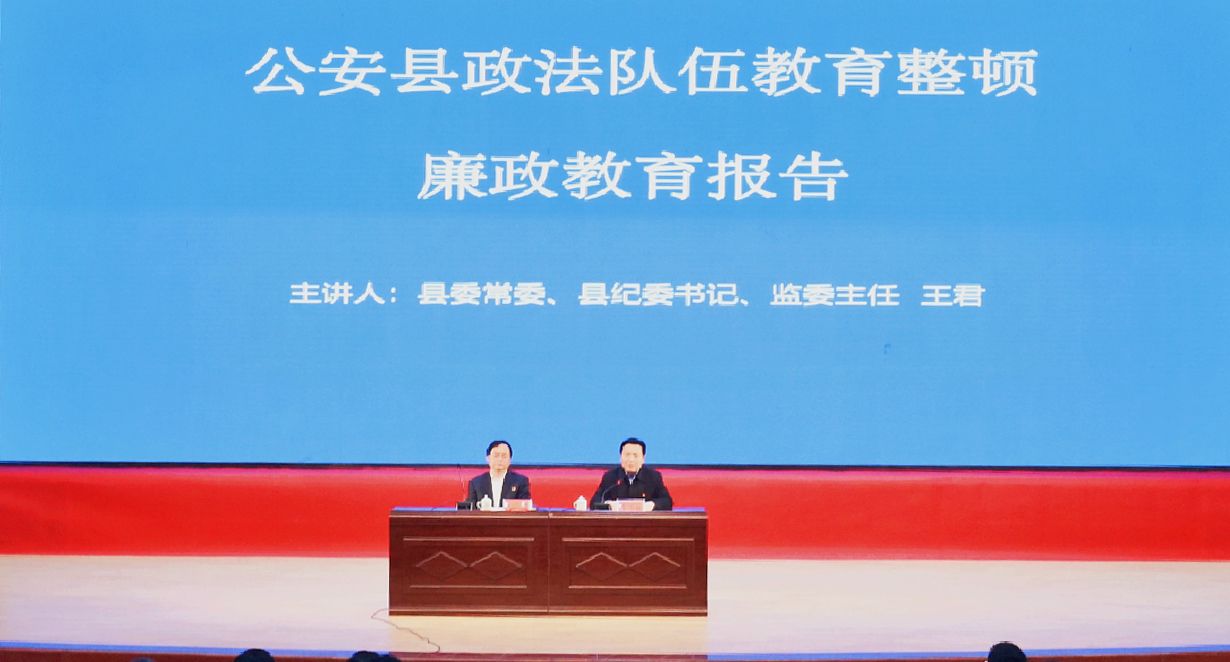 3月14日,公安县举行习近平法治思想专题讲座暨全县政法队伍教育整顿警示教育大会,县委书记夏光宏以《坚定信仰 ,对党忠诚 ,打造新时代公安政法铁军》为主题,为全县政法干警队伍上了一堂生动的党课。